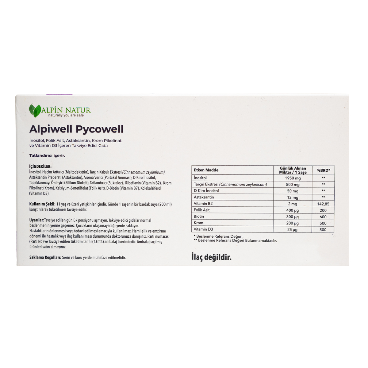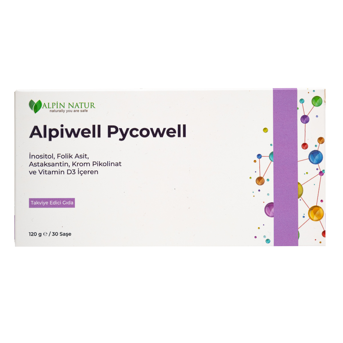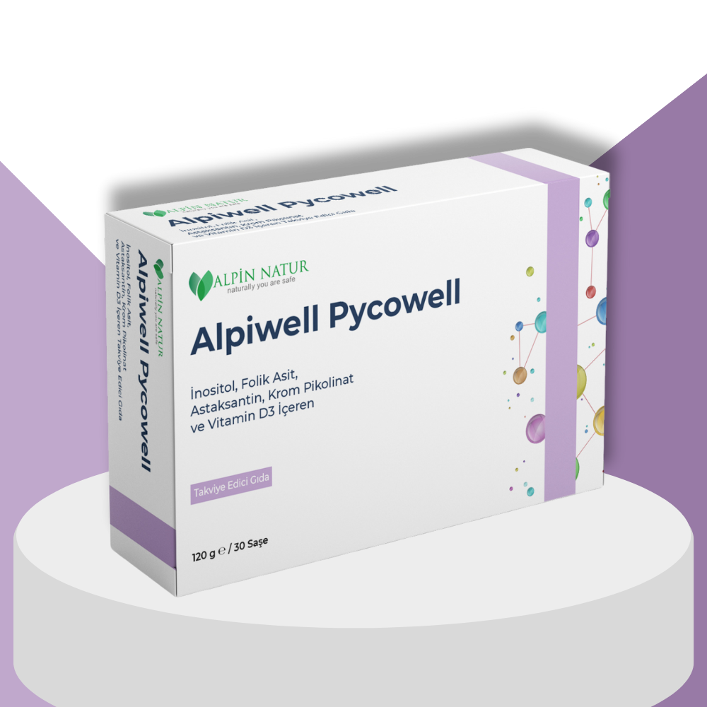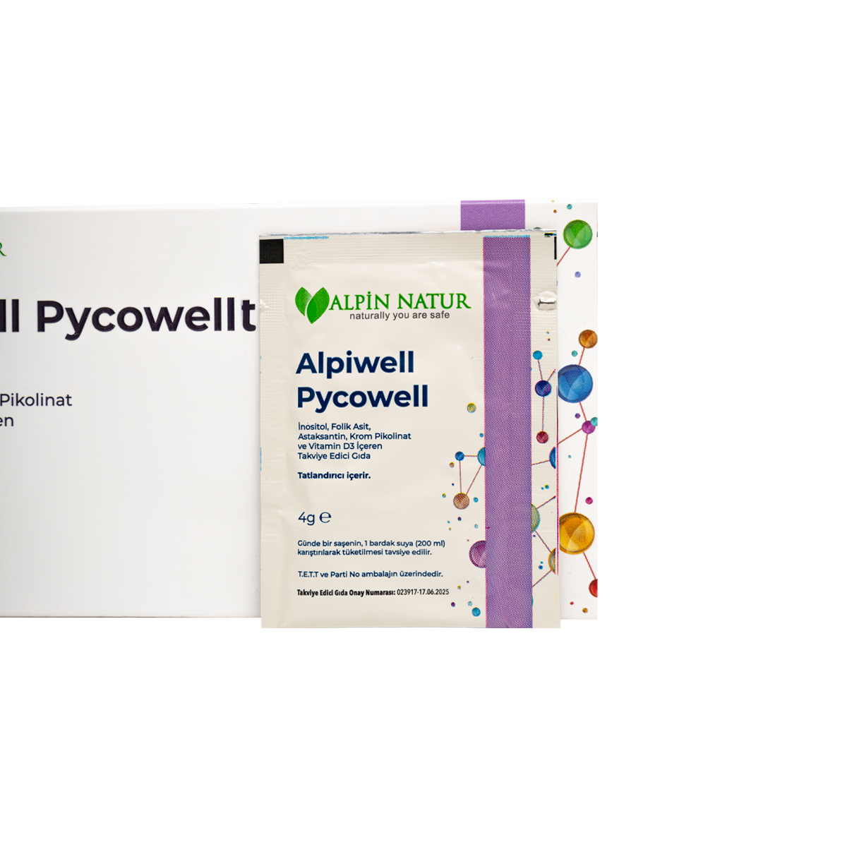 Alpiwell Pycowell, PCOS yönetimi için modern ve bilimsel temellere dayalı bir formüldür. 1950 mg Miyo-İnositol ve 50 mg D-Kiro İnositol ile 40:1 oranına yakındır. Bu oran etkinlik açısından kritiktir. Astaksantin antioksidan desteği ve vitamin kompleksi ile hormonal denge ve metabolizmayı birlikte destekler. Dengeli beslenme ve egzersiz ile birlikte kullanıldığında etkisi maksimuma çıkar.